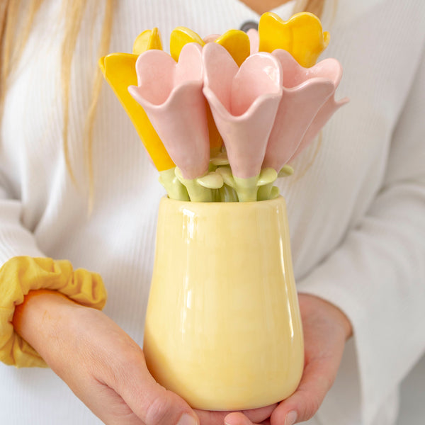 Ramo de tulipanes de cerámica hechos y pintados a mano