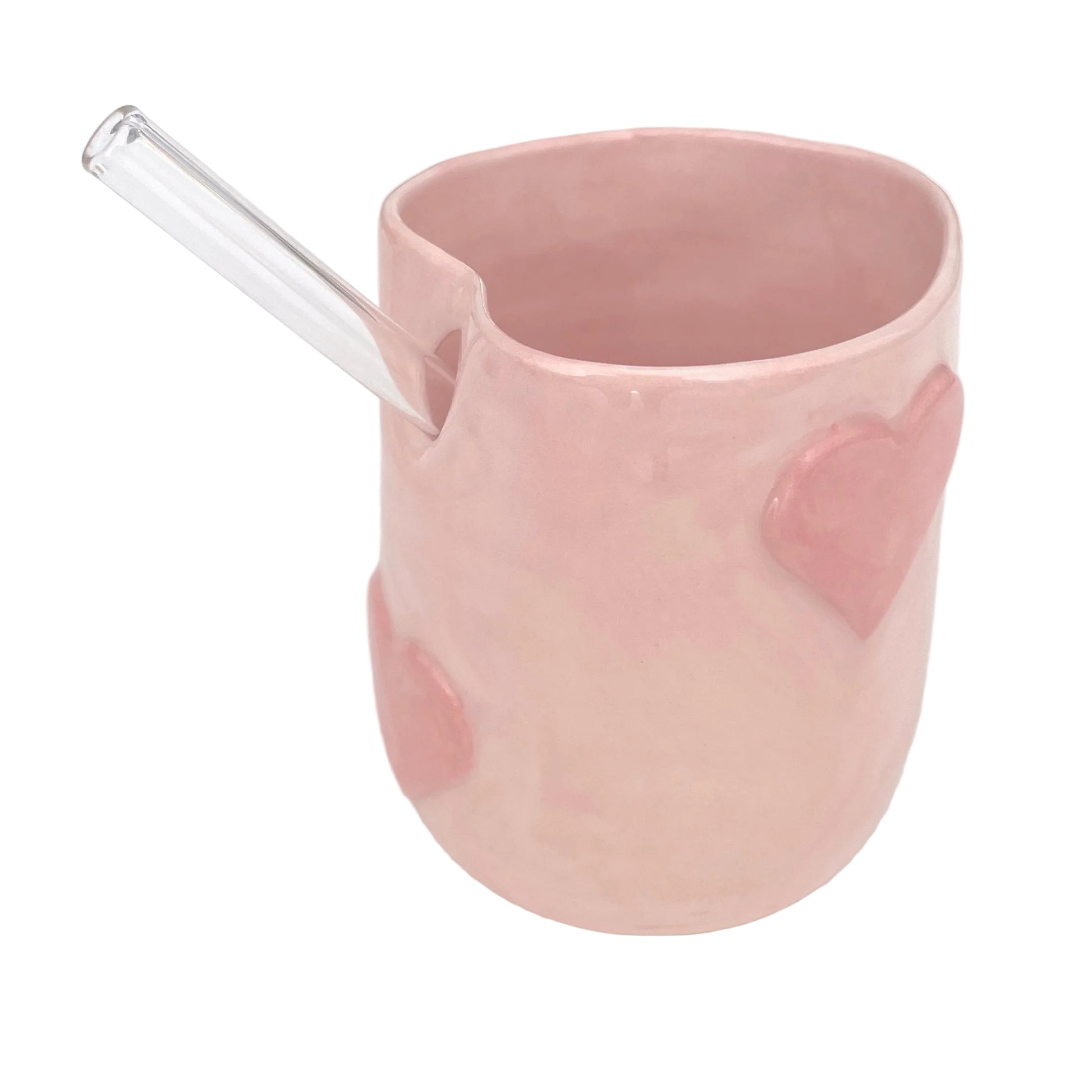 Set de vaso y bowl de cerámica hechos y pintados a mano. Pajita de vidrio incluida