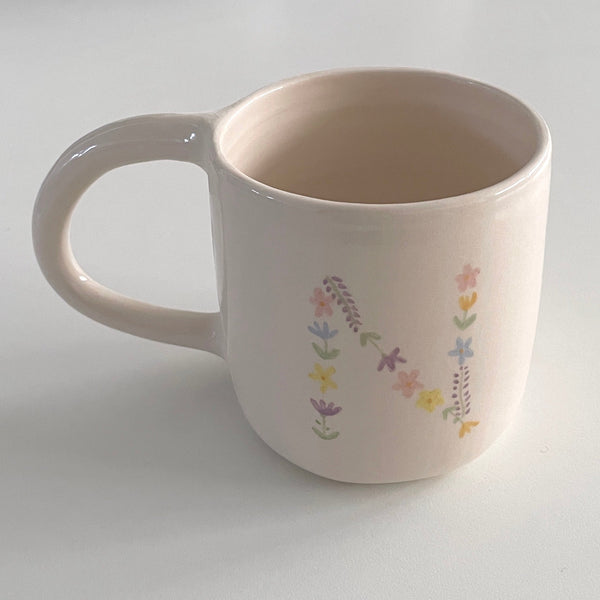 Taza de cerámica hecha y pintada a mano.