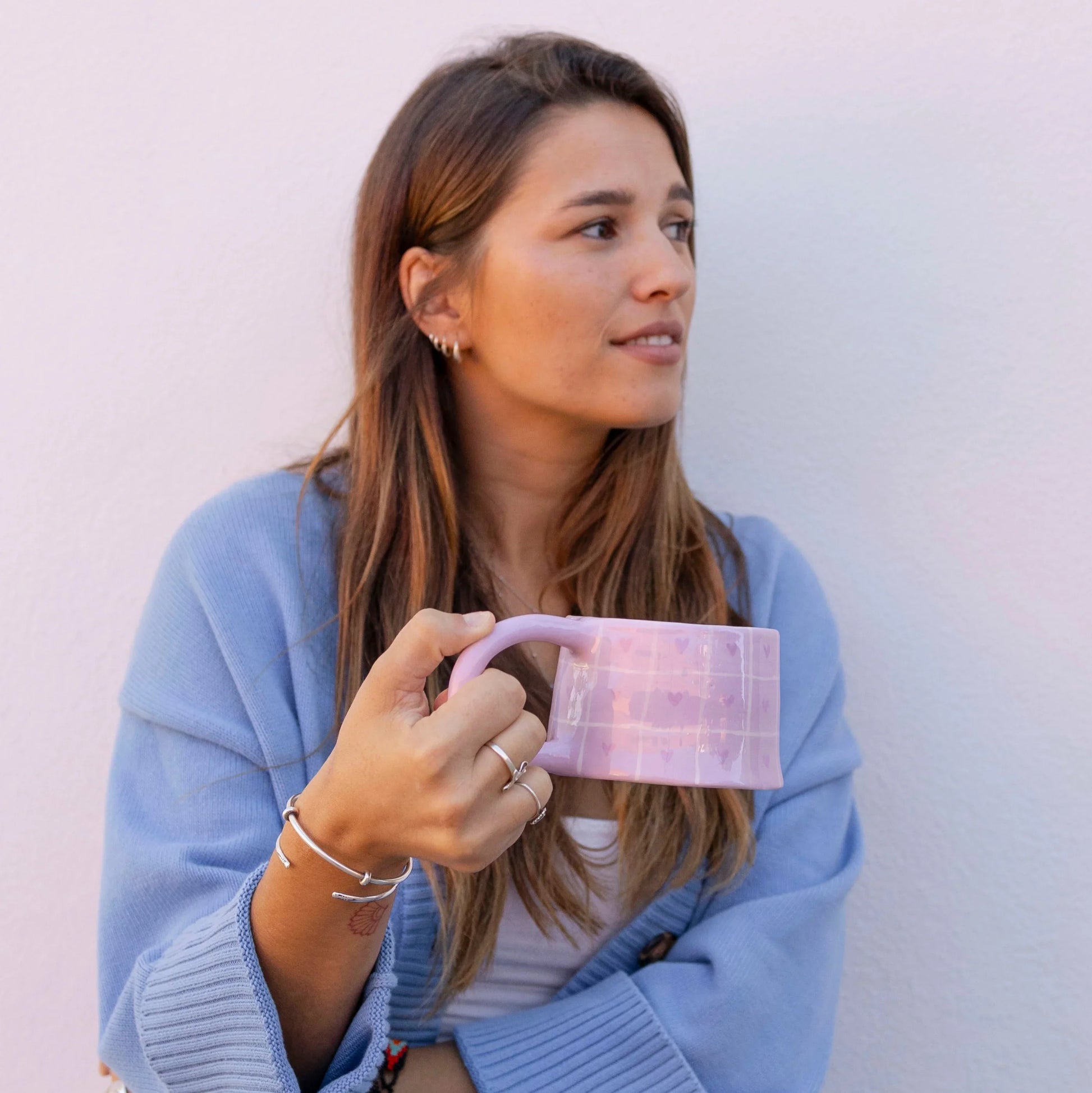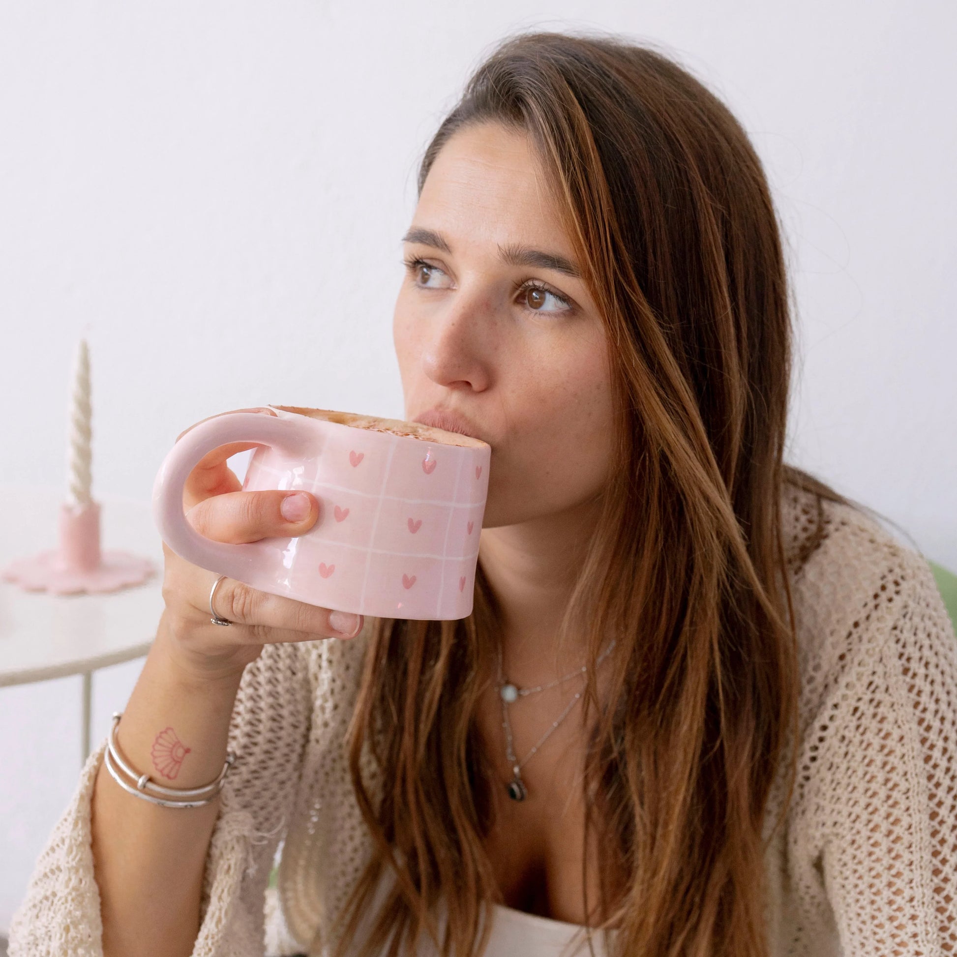 Taza de cerámica hecha y pintada a mano. Perfecta para tu café con leche, té o matcha