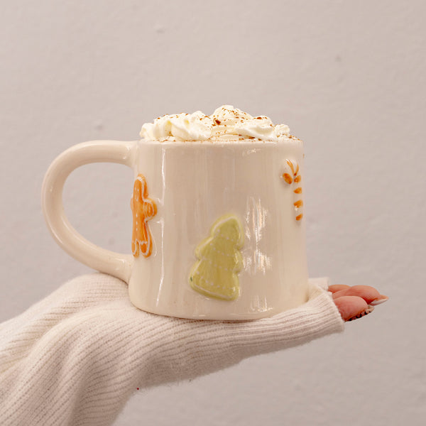 La Taza Happy Christmas destaca por sus delicados relieves que evocan la alegría de estas fiestas: un árbol de Navidad que simboliza la unión familiar, un muñeco de nieve que nos transporta a paisajes invernales, una encantadora galleta de jengibre que endulza nuestras mesas, y bastones de caramelo que nos recuerdan la dulzura de compartir momentos con los seres queridos.